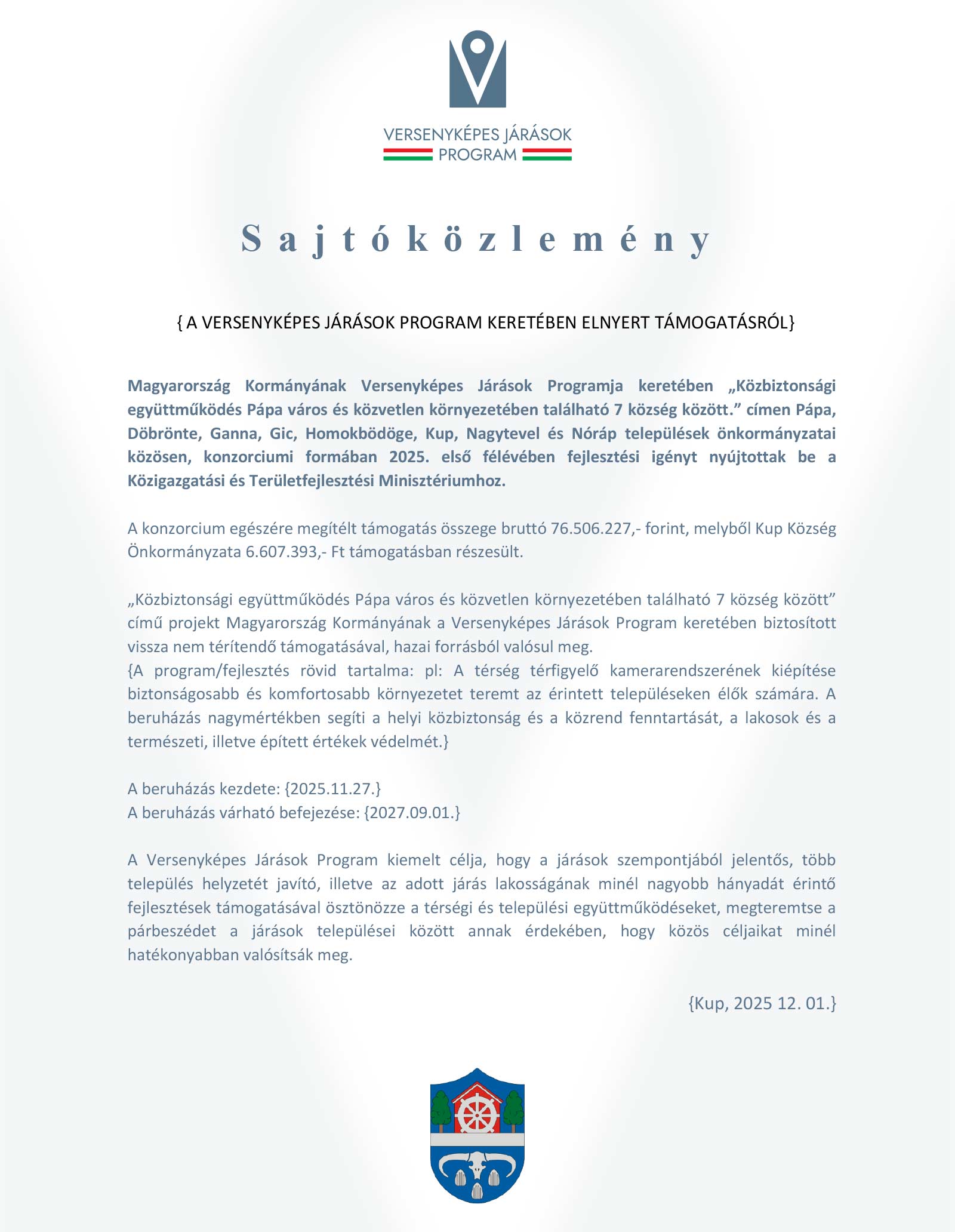 Kup Önkormányzata a Kulturális és Innovációs Minisztériummal együttműködve,